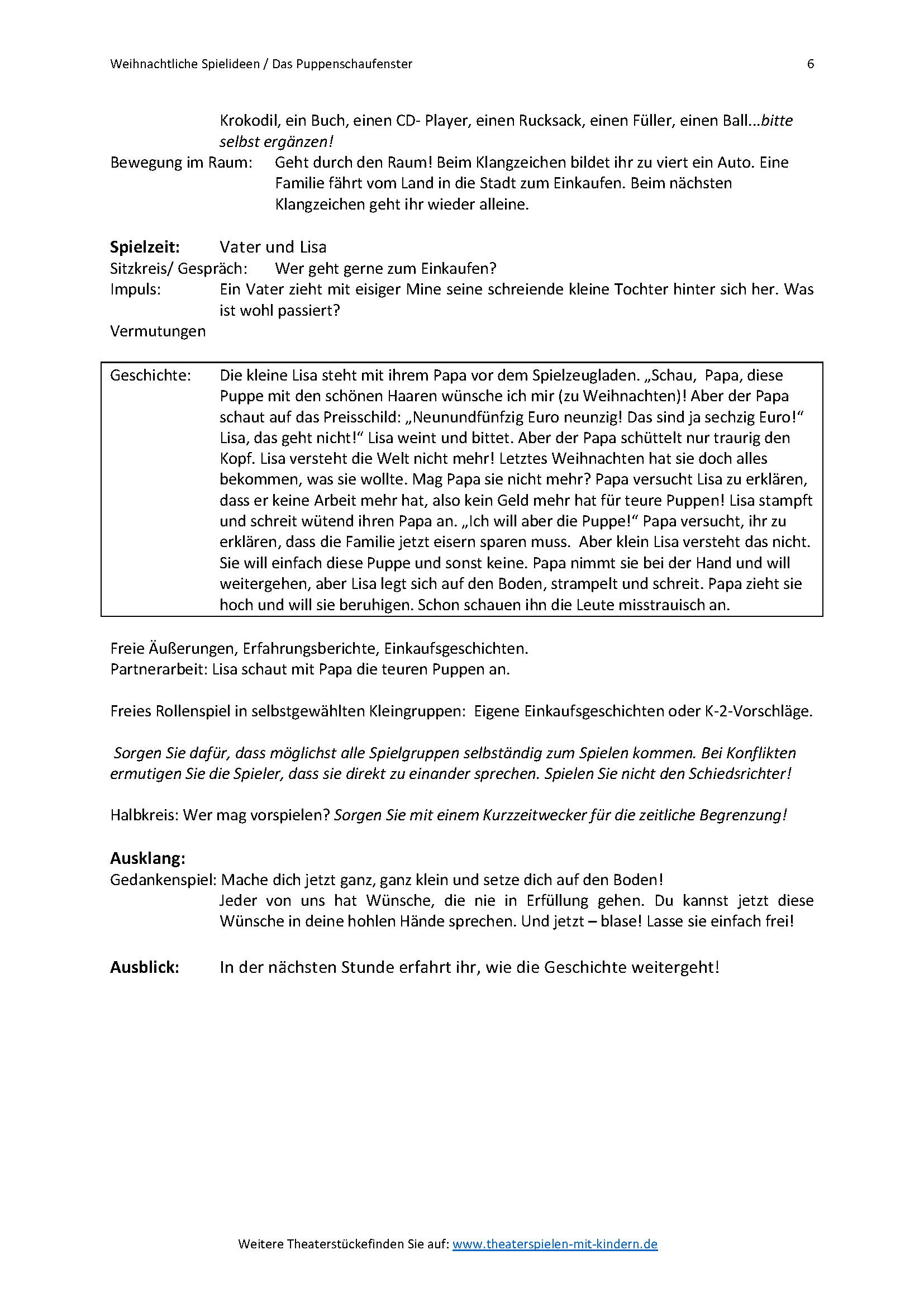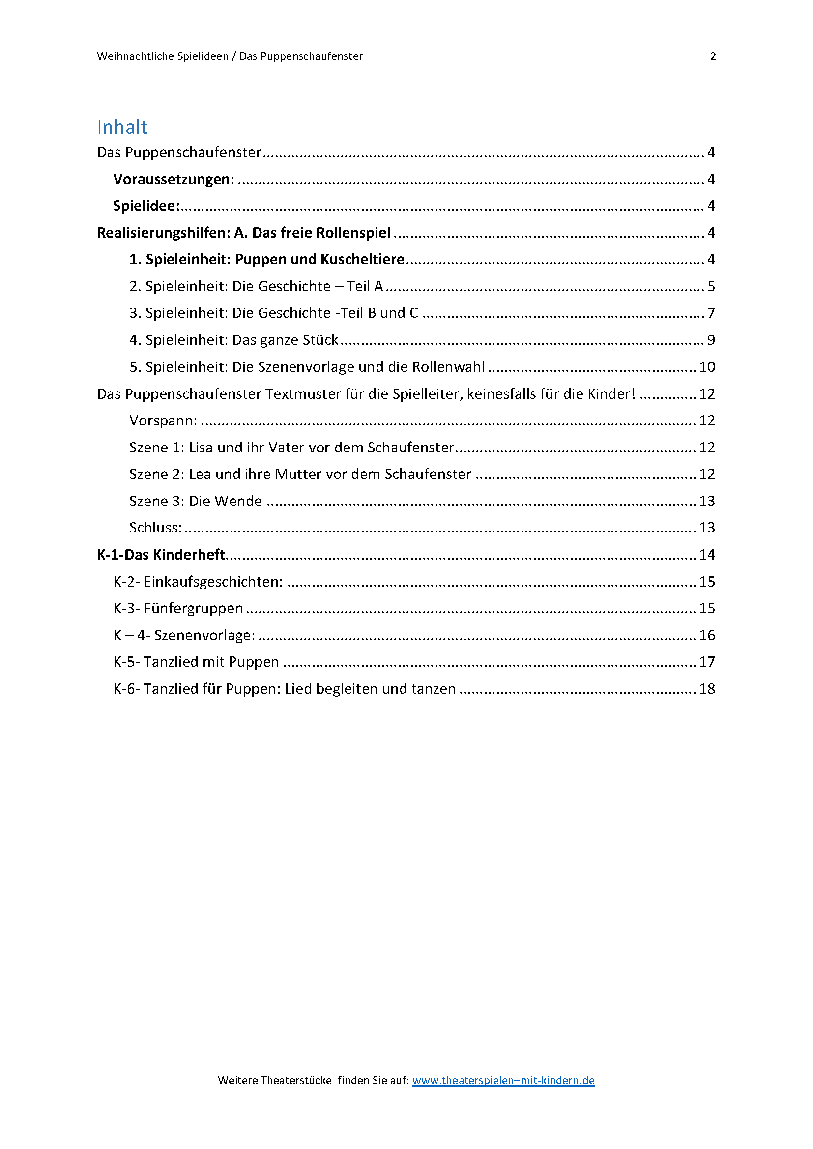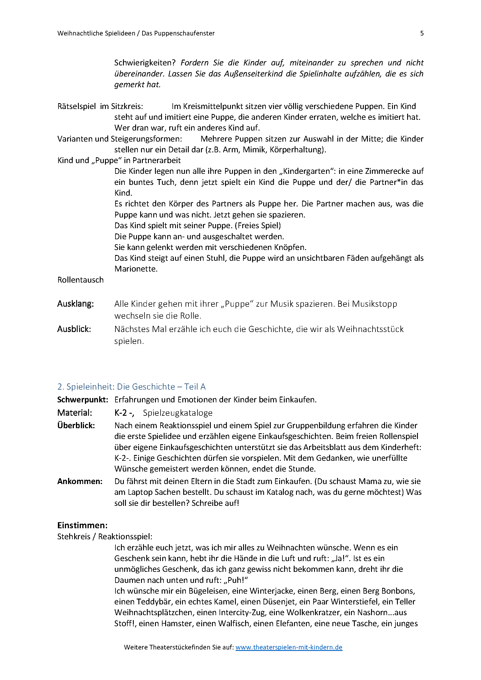 Das Puppenschaufenster - Weihnachtliche Spielideen, Heft 2